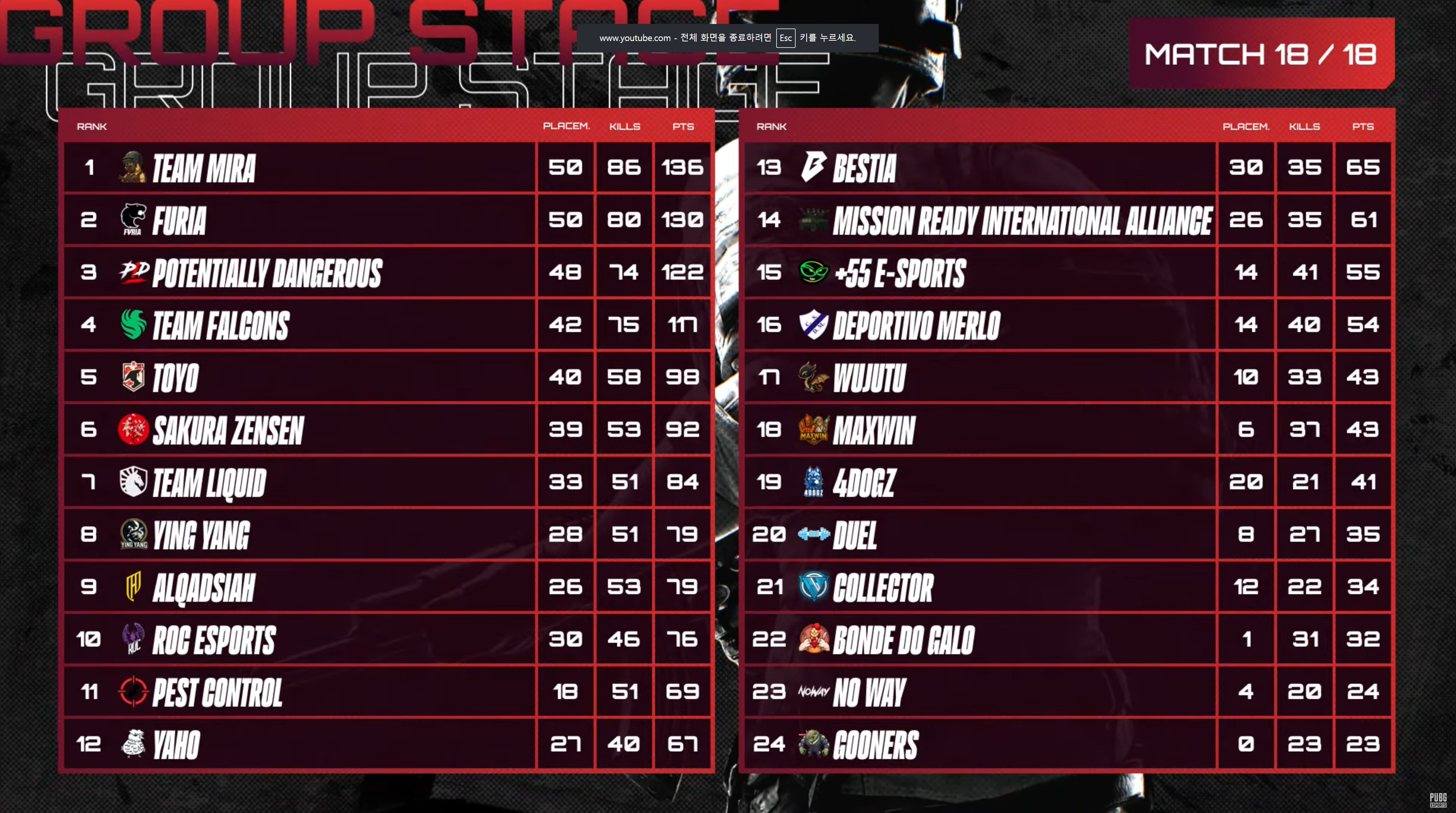 Day 1 Winner: Potentially Dangerous (54 points, 29 kills, 2 WWCDs)