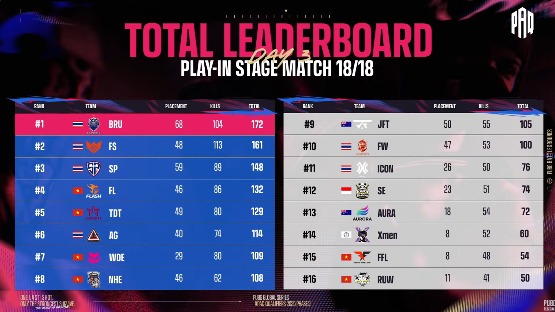 Summary: IFYOUMINE GAME PT and Baegopa surprised with strong kill numbers, while DN FREECS posted 72 points to solidify their consistency. Individual highlights stood out, with GimJun, Seongjang, and Pio delivering impactful performances. In the end, 15 teams advanced to the PWS Finals, mixing established giants with rising challengers.