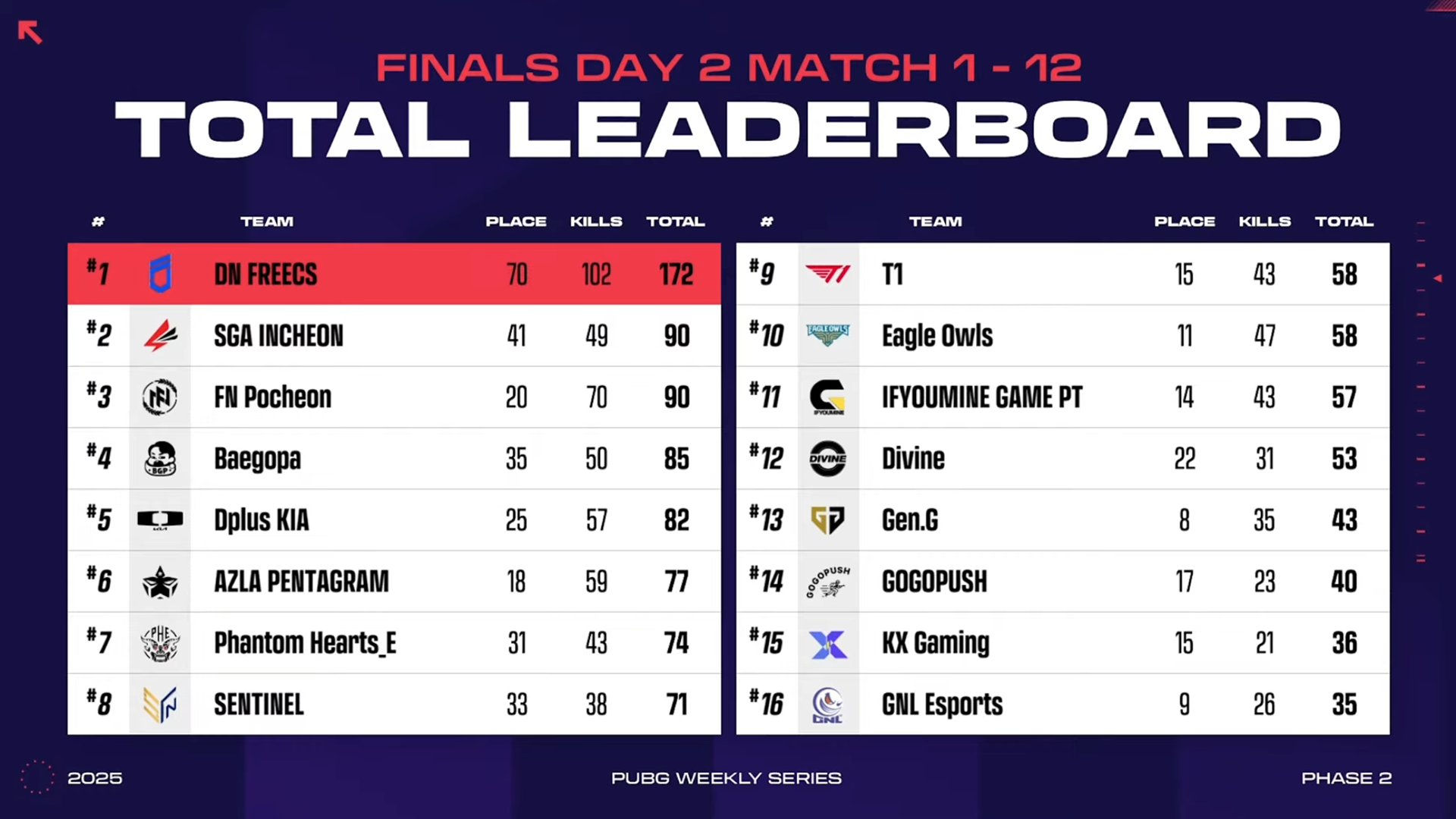 Day 2 Winner: DN FREECS (75 points, 44 kills, 2 WWCDs)