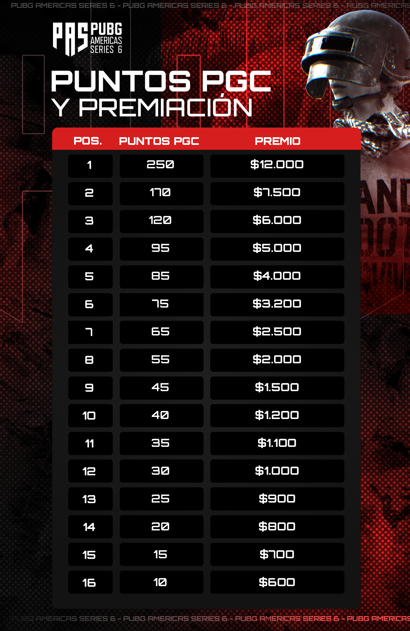 Los tres mejores equipos de la Gran Final de la PAS6 se clasificarán directamente para las PGS 9 y 10. Además, todos los equipos con mejor rendimiento compartirán el premio acumulado de $50.000 y ganarán Puntos PGC. Puedes seguir toda la acción en directo en los canales oficiales de PUBG Esports en Twitch y YouTube desde las Eliminatorias.