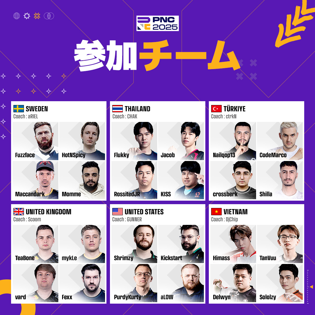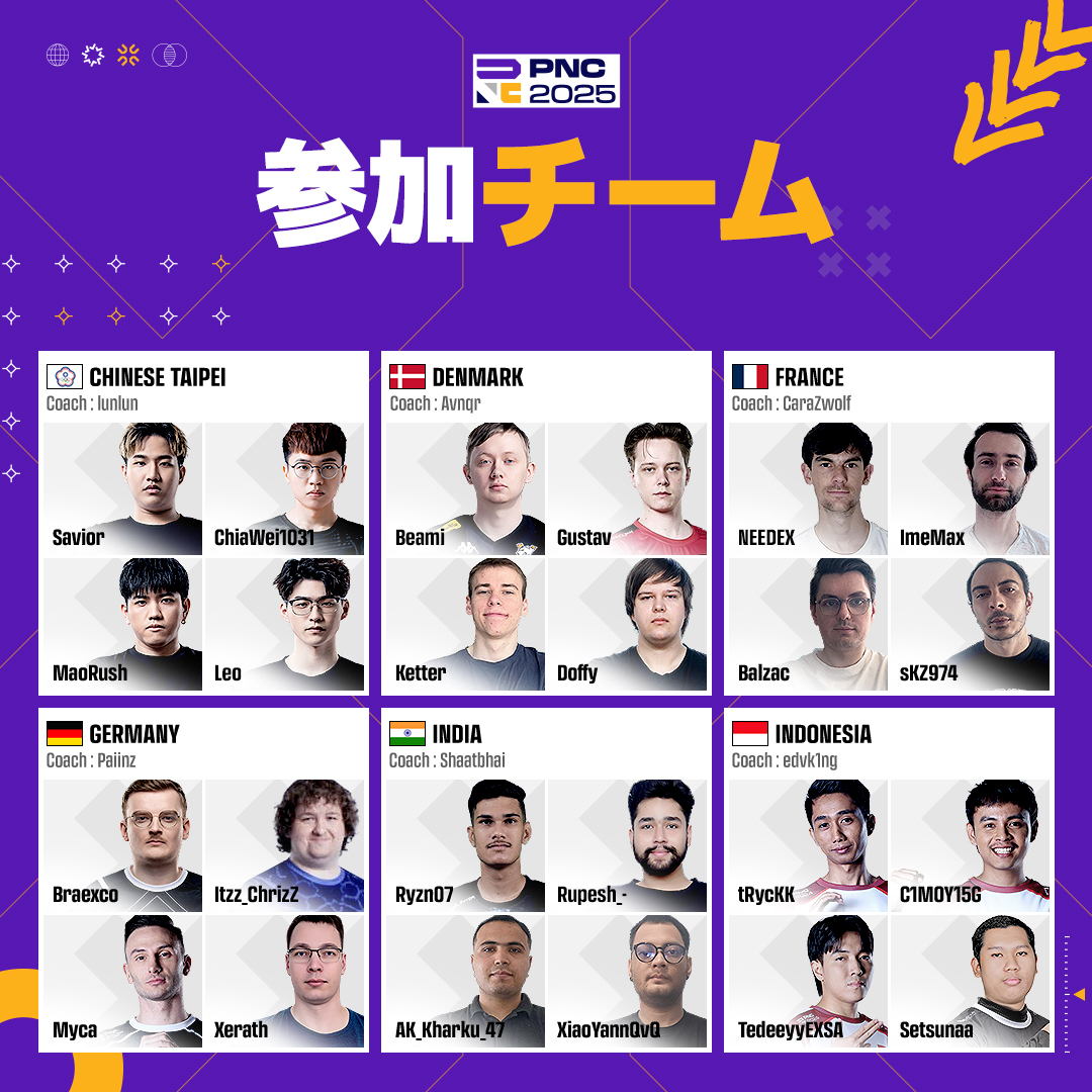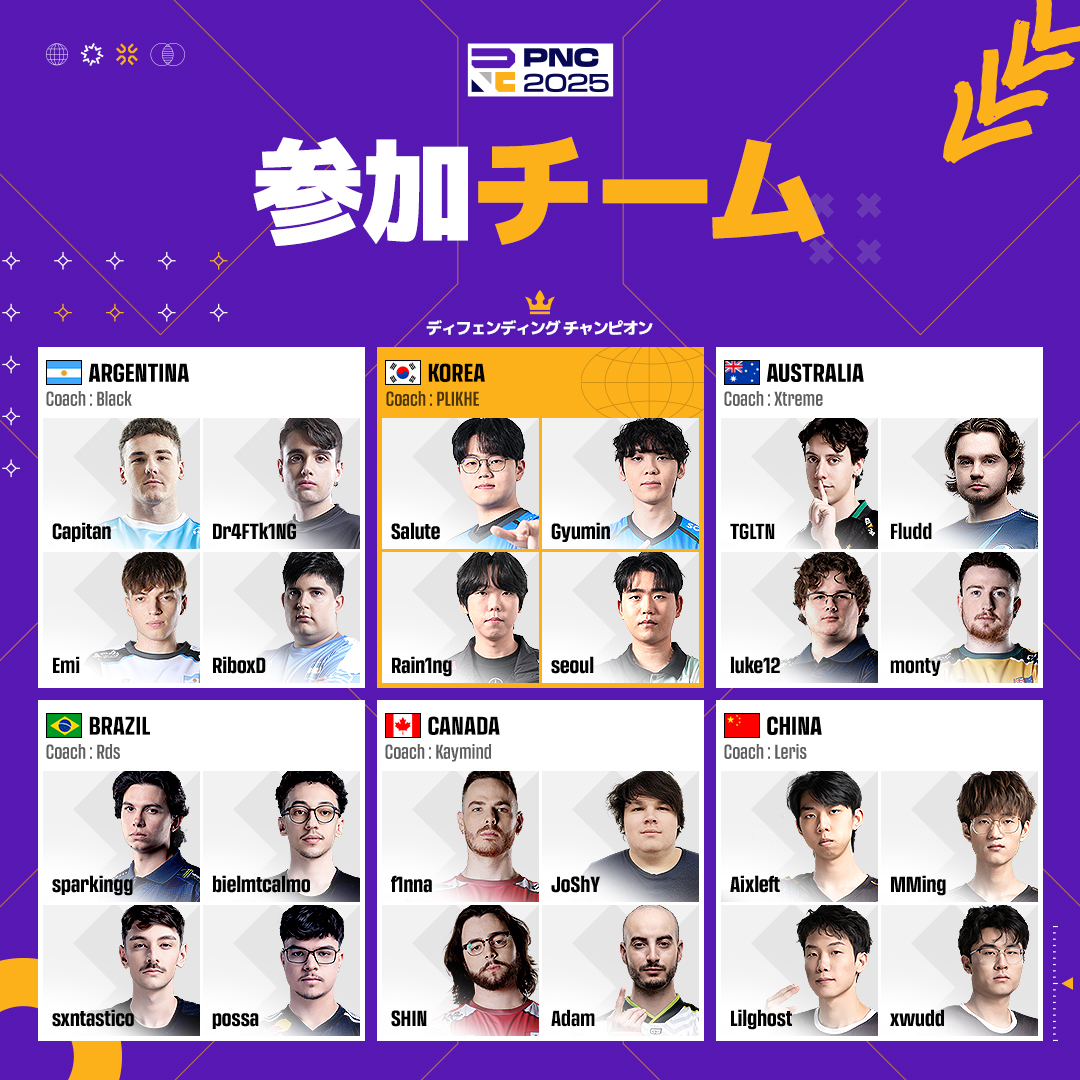 今年のPNCで競い合う各国代表チームのロースターを、以下よりチェックしてみてください!