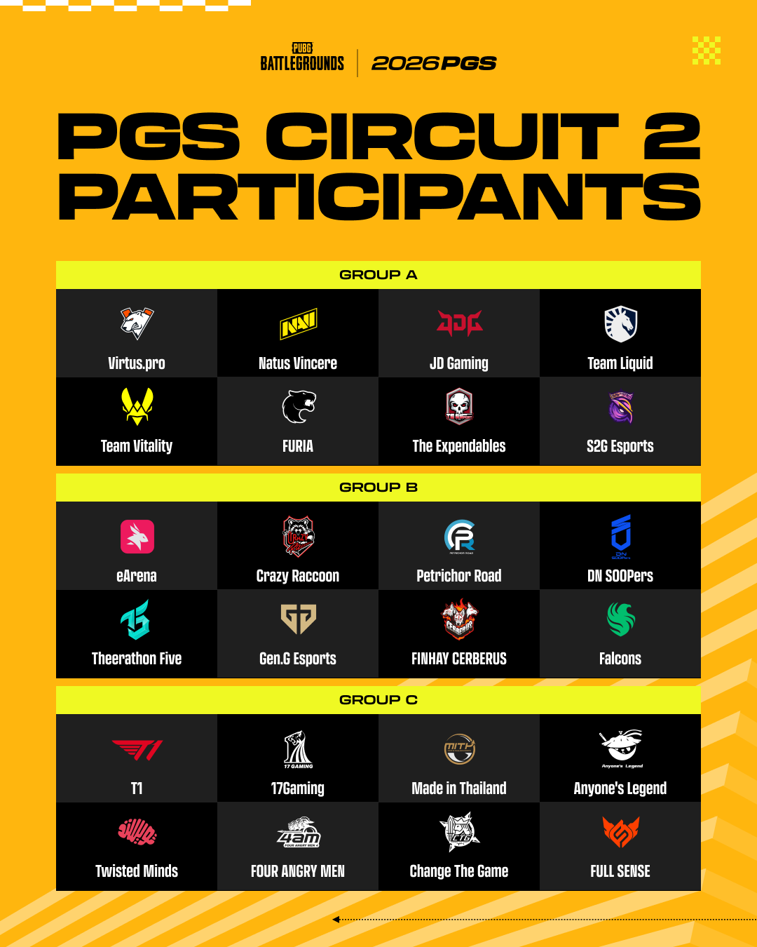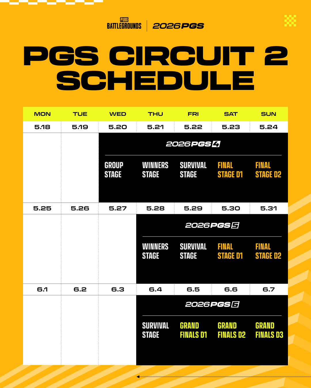 연간 PGS 포인트 레이스도 이어집니다 — 서킷 2까지의 성적은 최종 PGC 2026 진출(상위 8개 팀 직행)을 위한 중요한 기반이 됩니다.