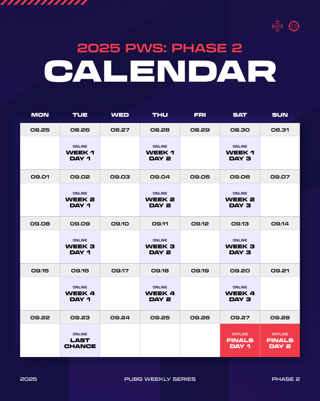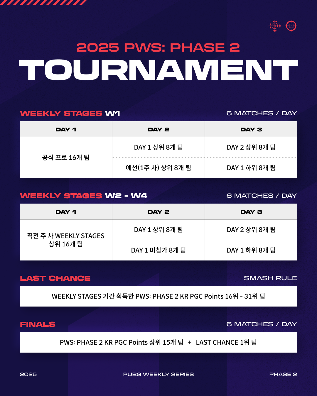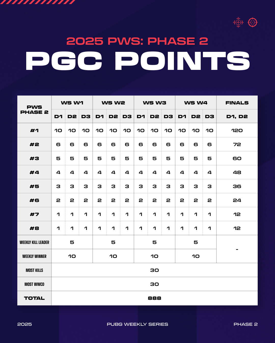 • PWS 성적에 따라 PUBG Global Series 9&10 및 PGC 2025 진출
