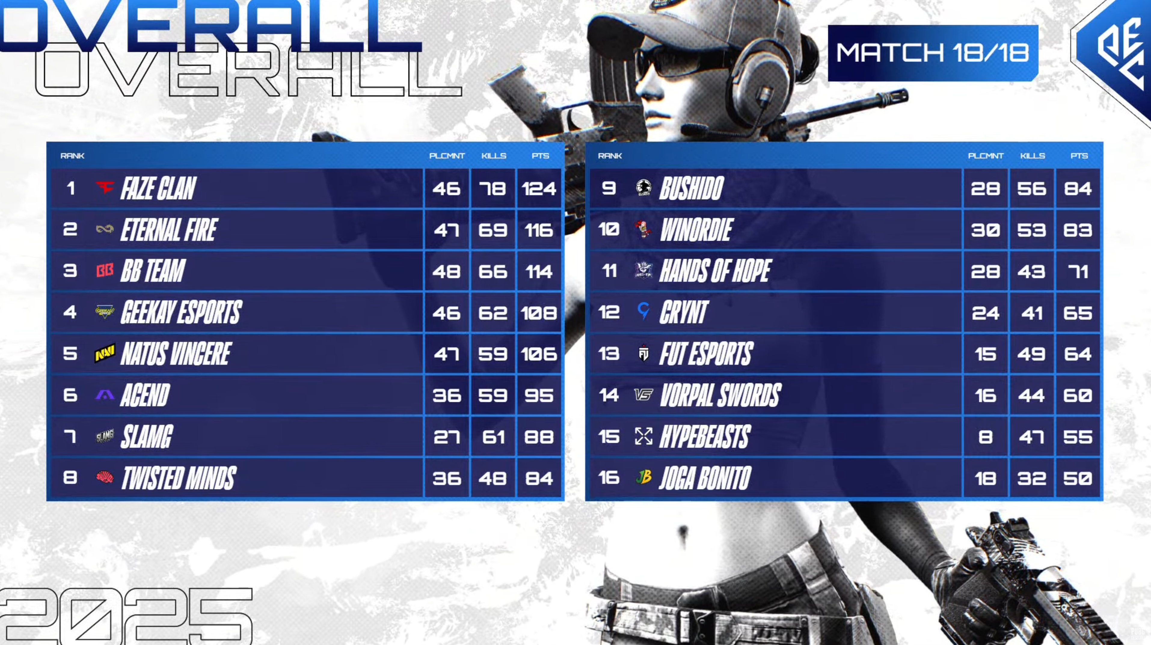 파이널 직행 팀 (상위 8팀): FaZe Clan, Eternal Fire, BB Team, Geekay Esports, Natus Vincere, Acend, SLAMG, Twisted Minds