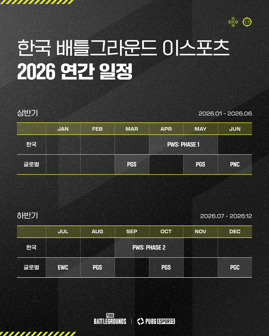 2026년 한국 배틀그라운드 이스포츠 대회 일정을 안내드립니다.