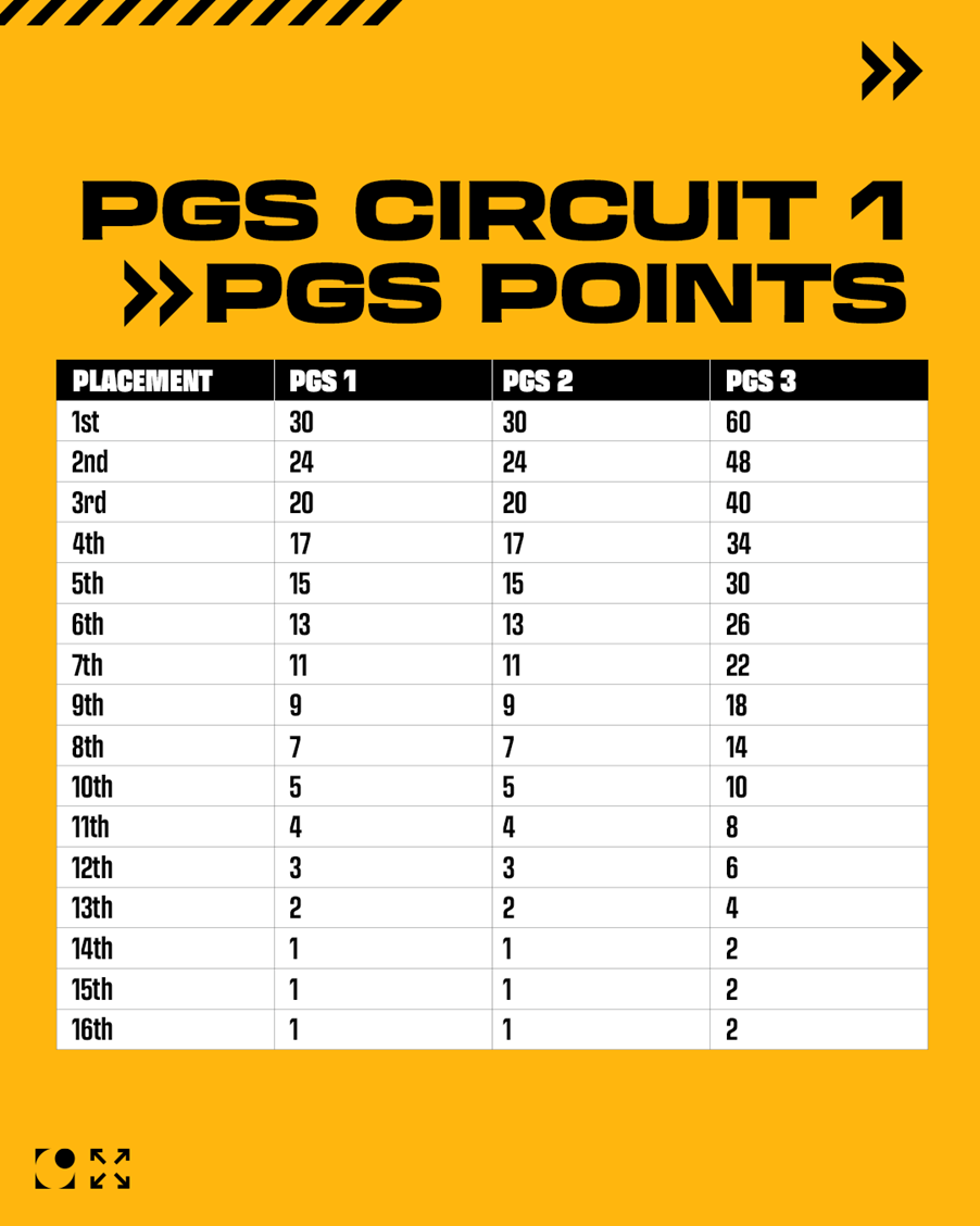 시즌 후반 참고: 하반기에는 포인트 비중이 더 높아집니다. 서킷 3과 서킷 4는 시리즈당 더 많은 포인트를 부여하여, 시즌 후반에도 PGC 진출을 향한 역전의 기회가 충분히 열려 있습니다.