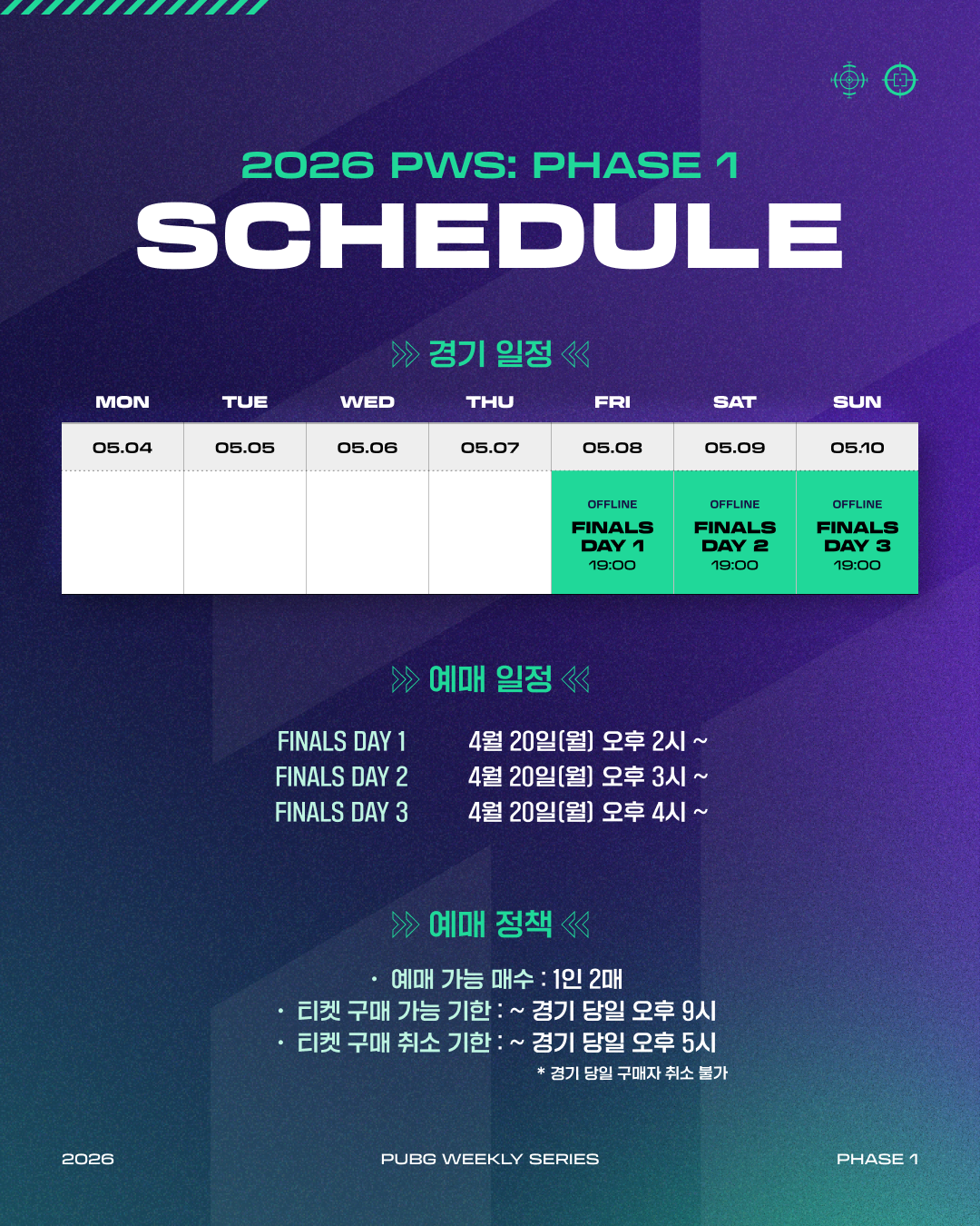 FINALS DAY 2 | 5.9(토) 오후 7시 ~ | 4.20(월) 오후 3시 ~ |