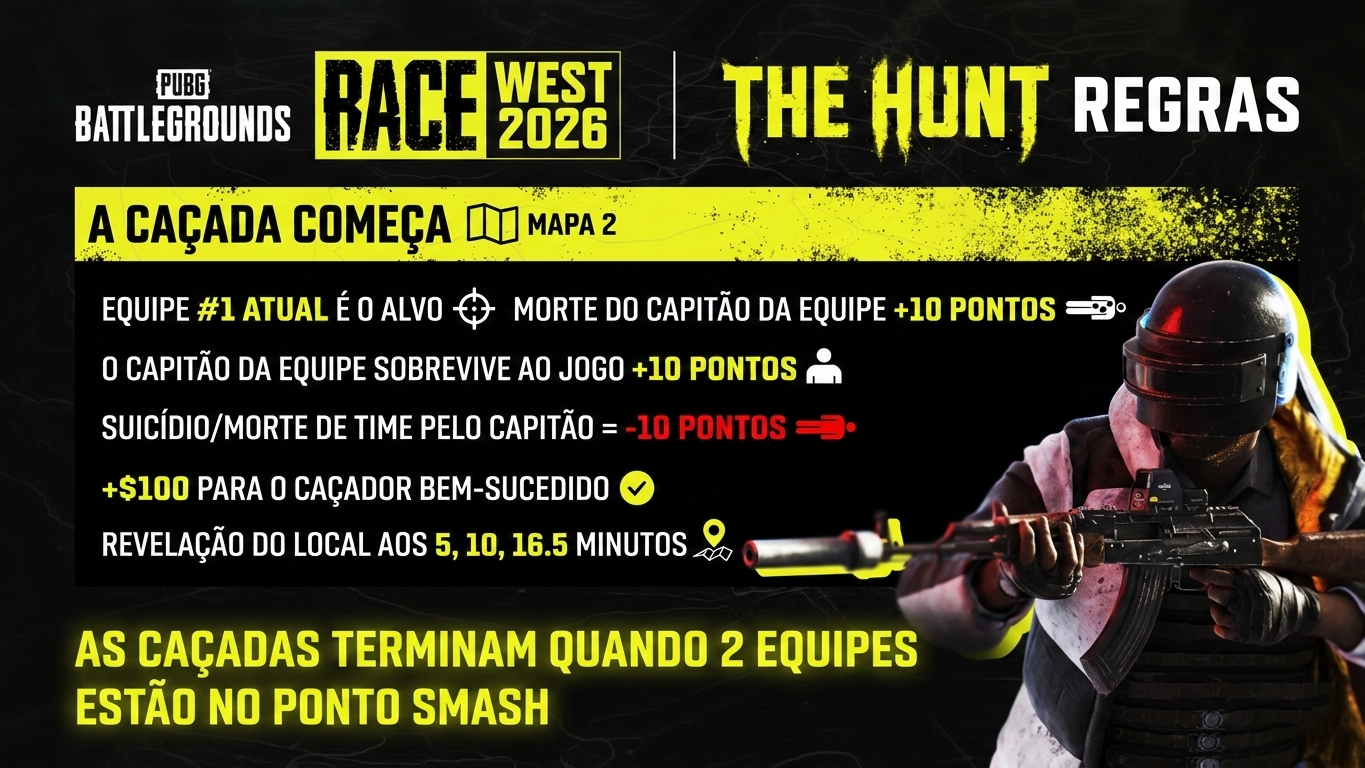 Além do sistema de pontuação, o PUBG RACE 2026 terá uma regra especial chamada "The Hunt".