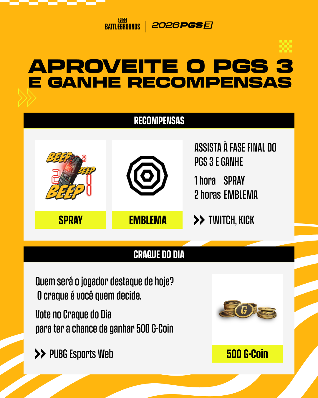 A fase final do Circuito 1 da PGS — PGS 3! Sintonize ao vivo, pegue seus itens de Drops e vote no seu Craque do Dia!