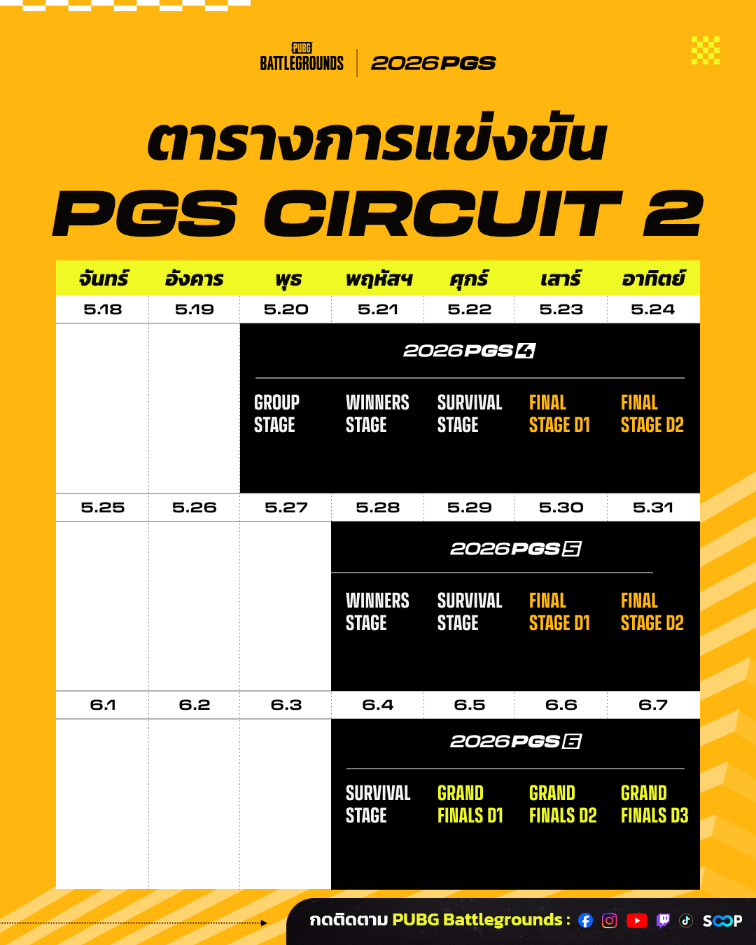 สำหรับซีรีส์สุดท้ายของ Circuit 2 อย่าง PGS 6 จะใช้เวอร์ชันเกมที่รวม May Update เข้าไปแล้ว โดยรายละเอียดเพิ่มเติมจะประกาศใน May Patch Notes ต่อไป