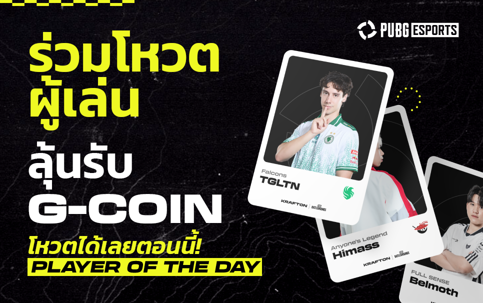 PUBG Esports เปิดตัวระบบใหม่ “Player of the Day (PoD)” — โปรแกรมโหวตจากแฟน ๆ แบบใหม่ล่าสุด ที่ให้คุณเลือกผู้เล่นที่ทำผลงานน่าประทับใจที่สุดใน วันสุดท้ายของรอบ Finals ของทุก PGS