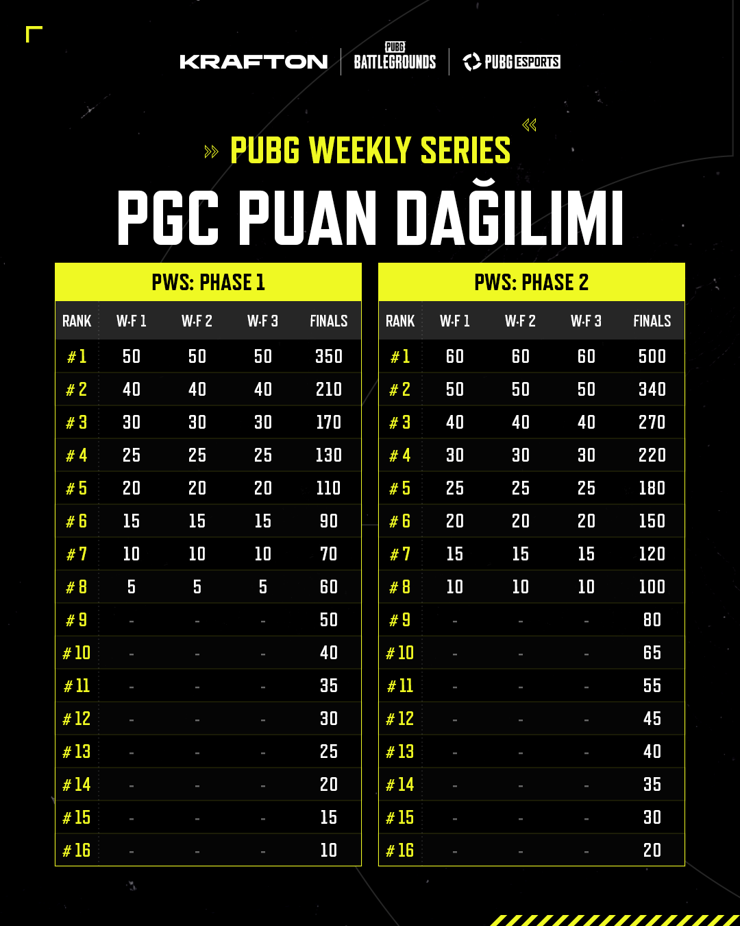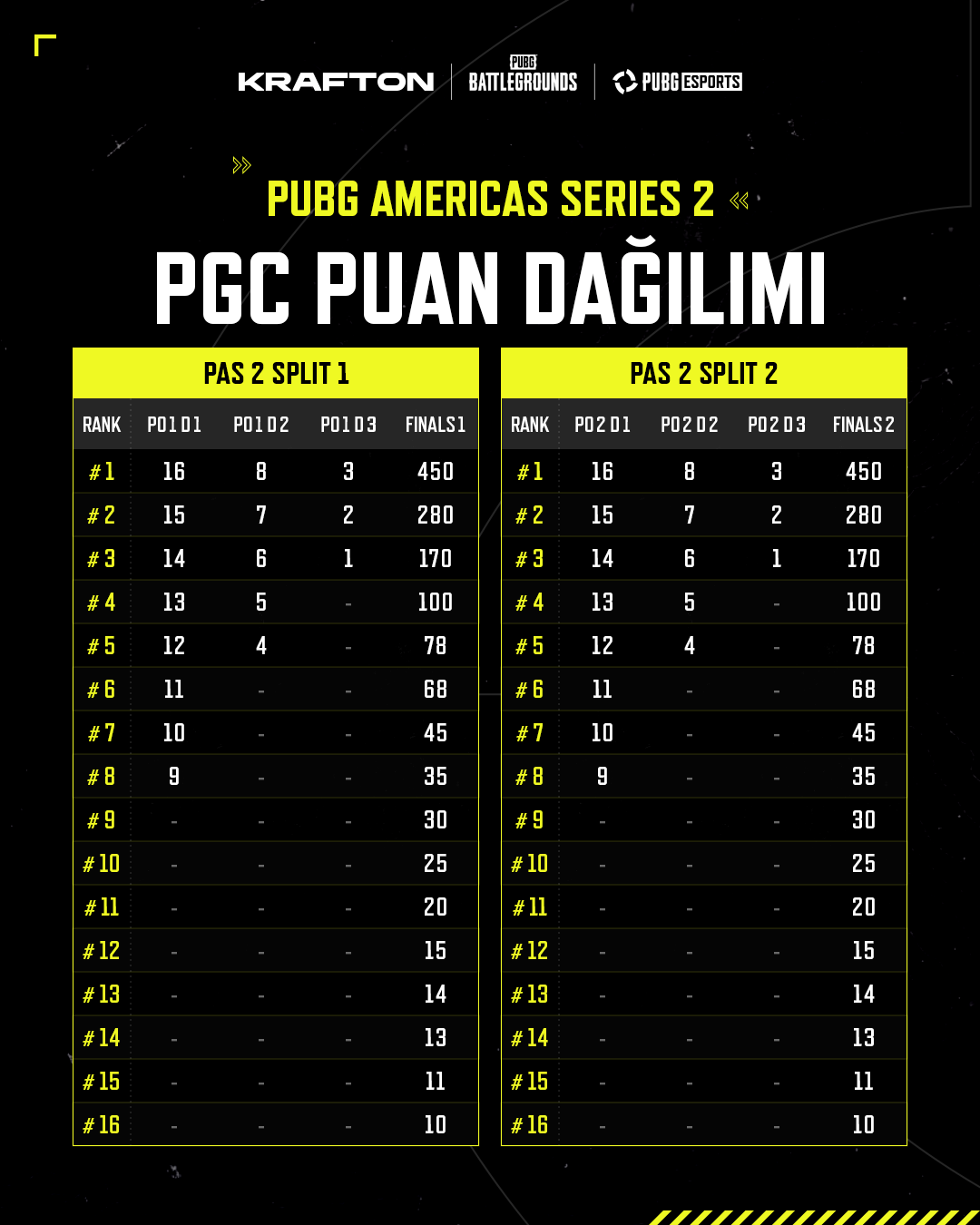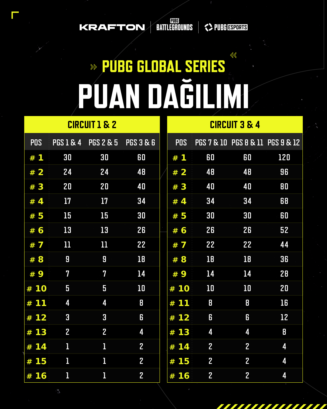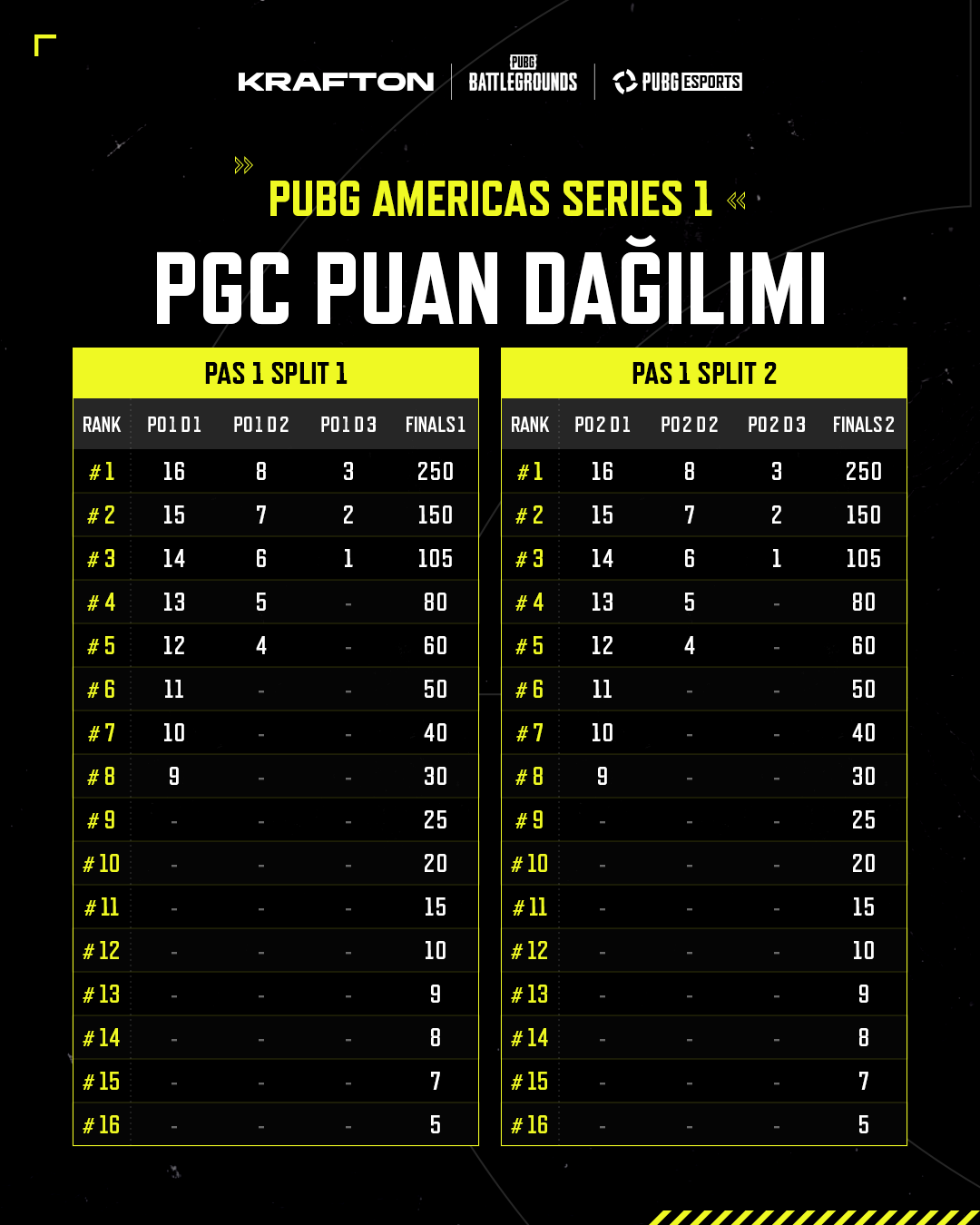 ❗️ Yalnızca ilk 16 takım PGS Puanı kazanır. 17–24. sırada yer alan takımlar PGS Puanı elde edemez.