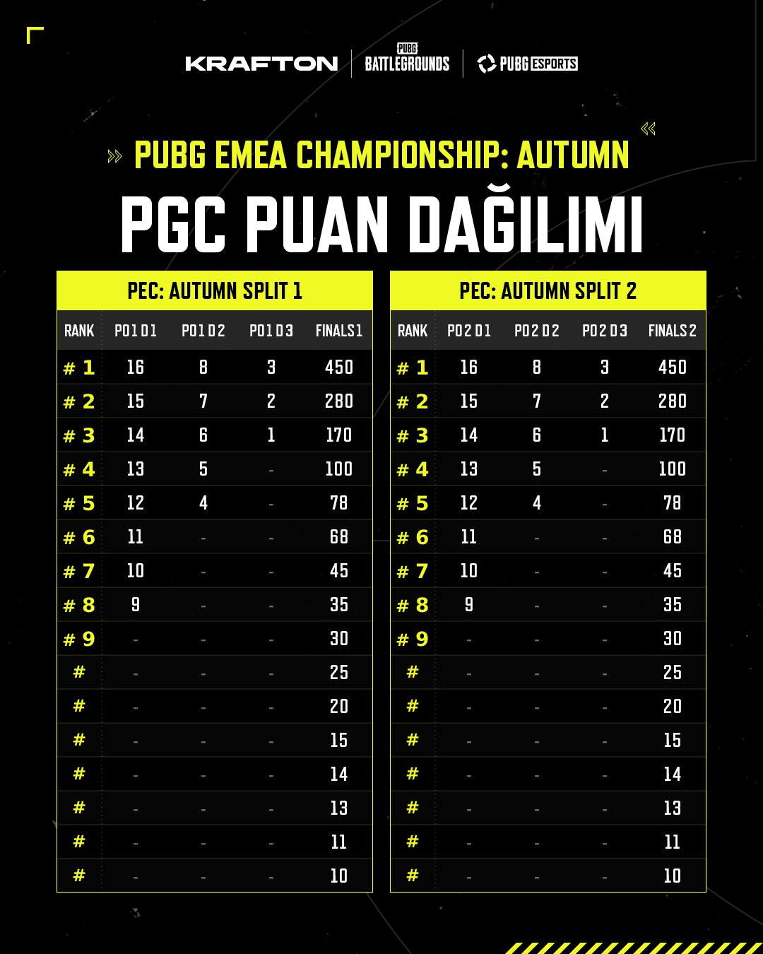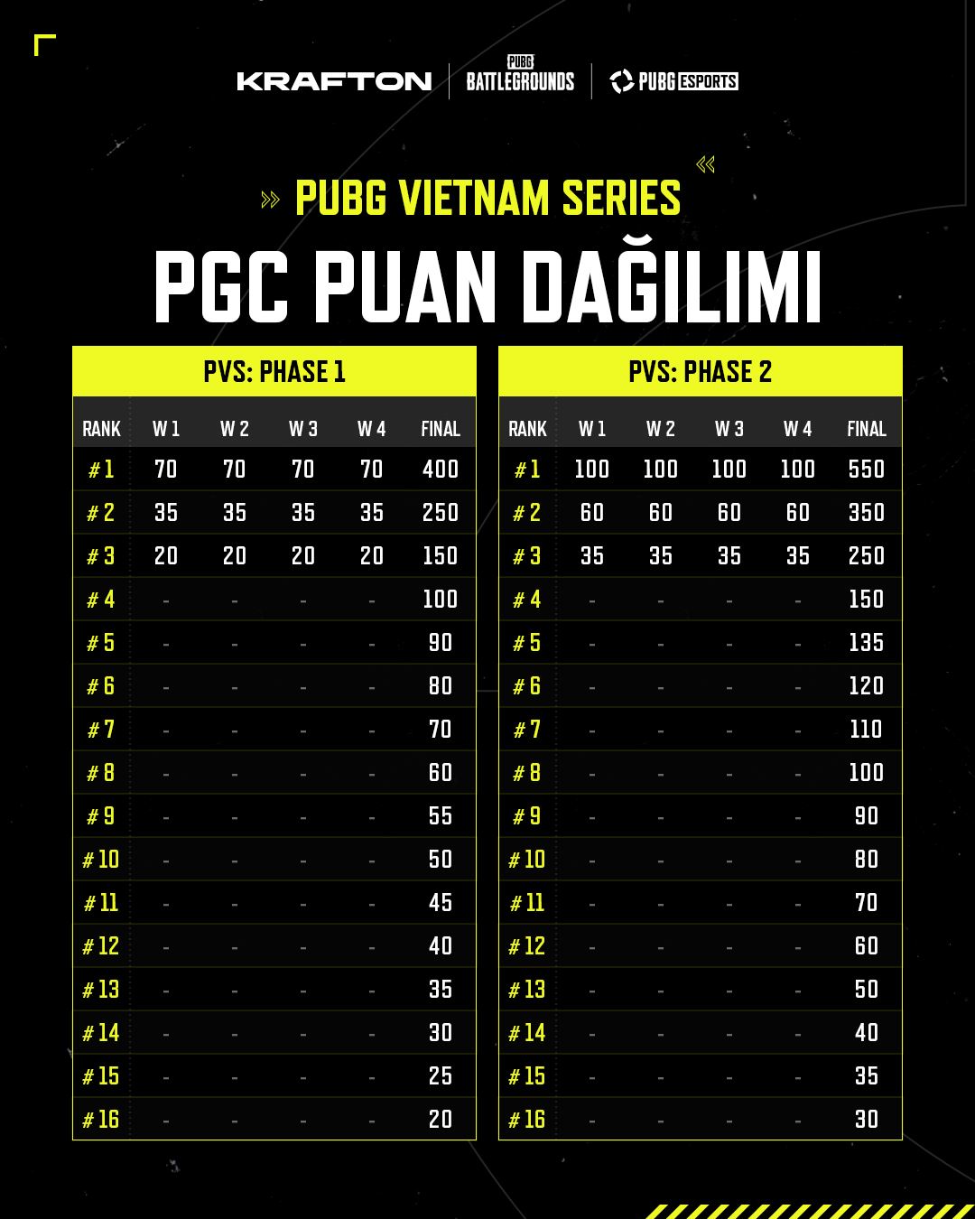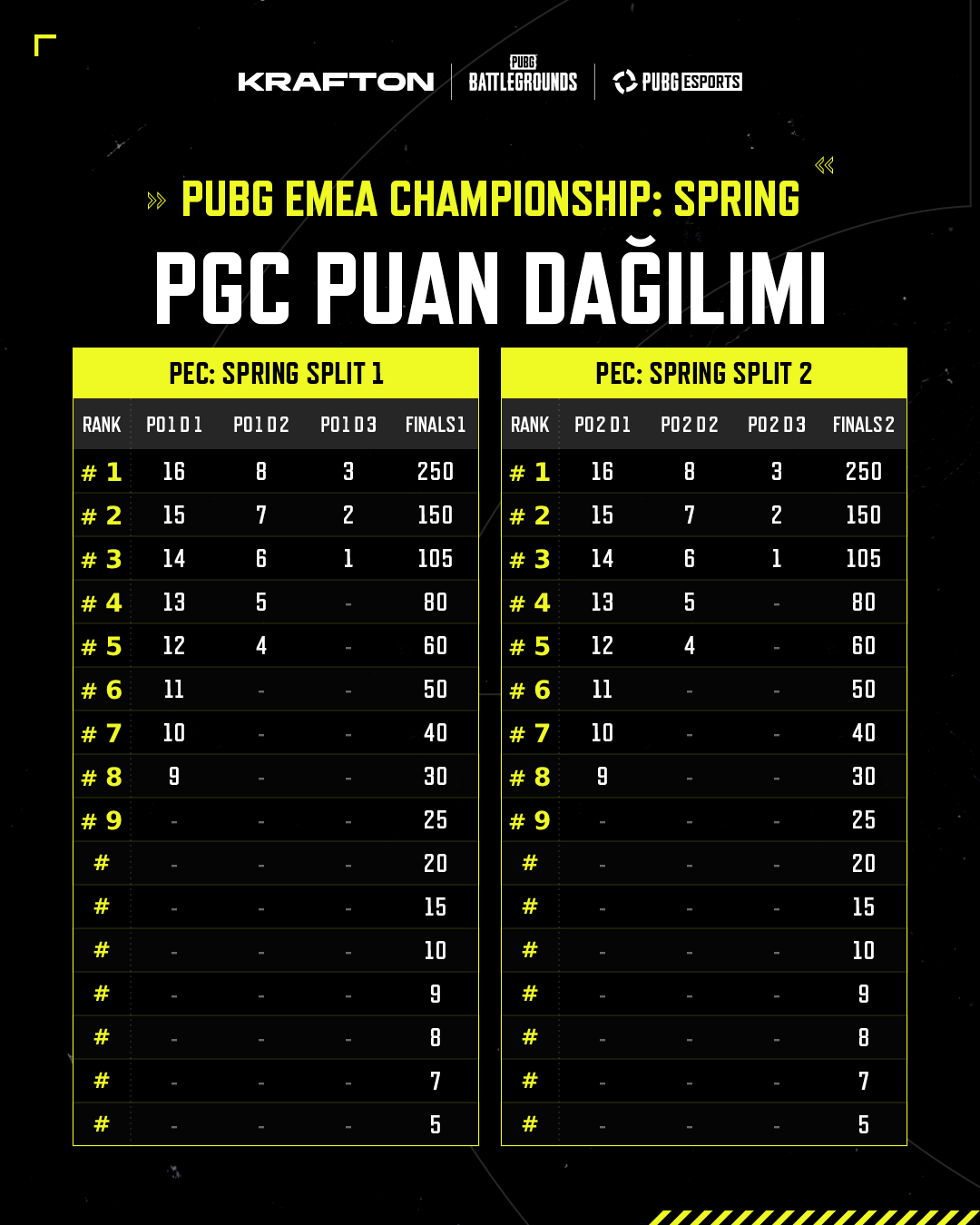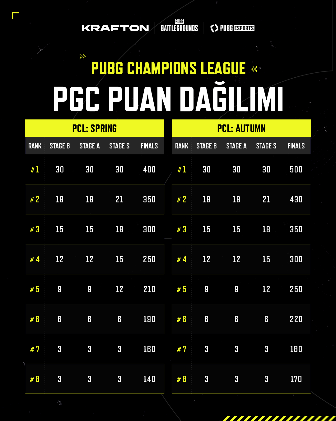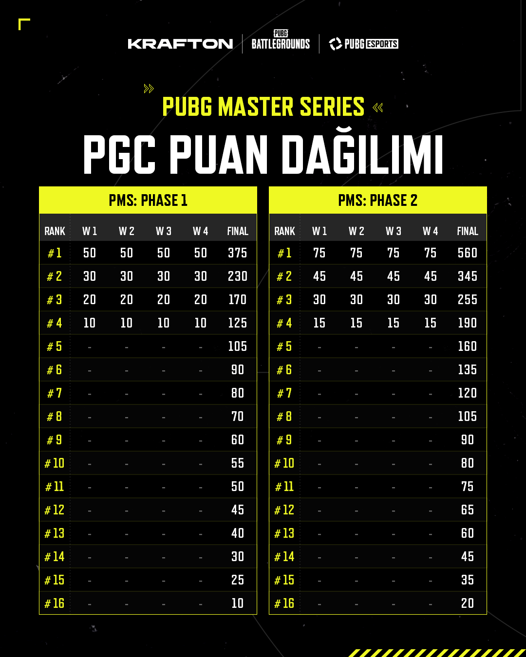❗️ Yalnızca ilk 16 takım PGS Puanı kazanır. 17–24. sırada yer alan takımlar PGS Puanı elde edemez.