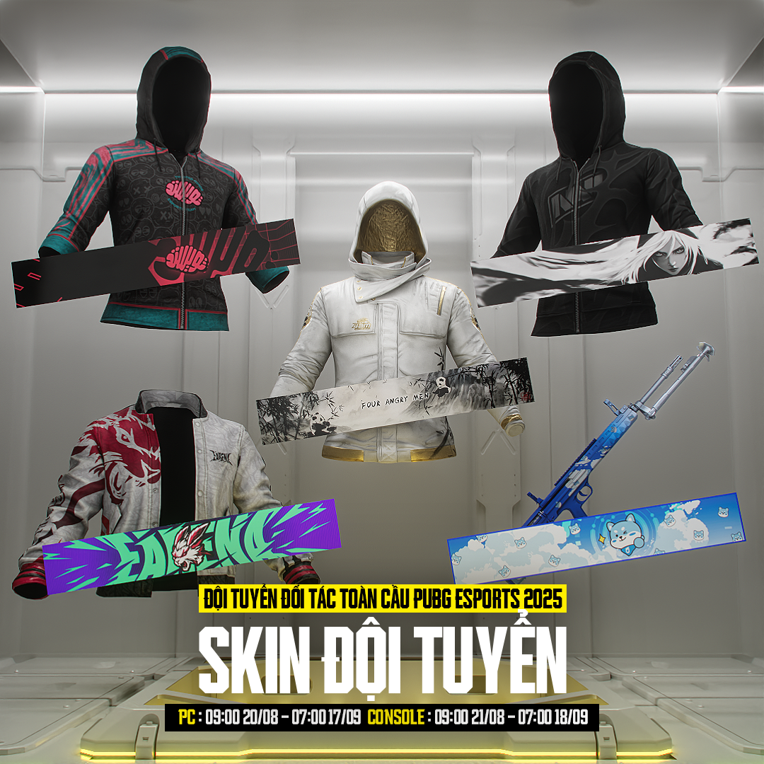 *25% doanh thu thuần từ Skin Phiên Bản Đội Tuyển trong PUBG sẽ được phân bổ cho các Đội Tuyển Đối Tác Toàn Cầu. Đây là cơ hội để bạn thể hiện sự ủng hộ dành cho đội tuyển yêu thích của mình!