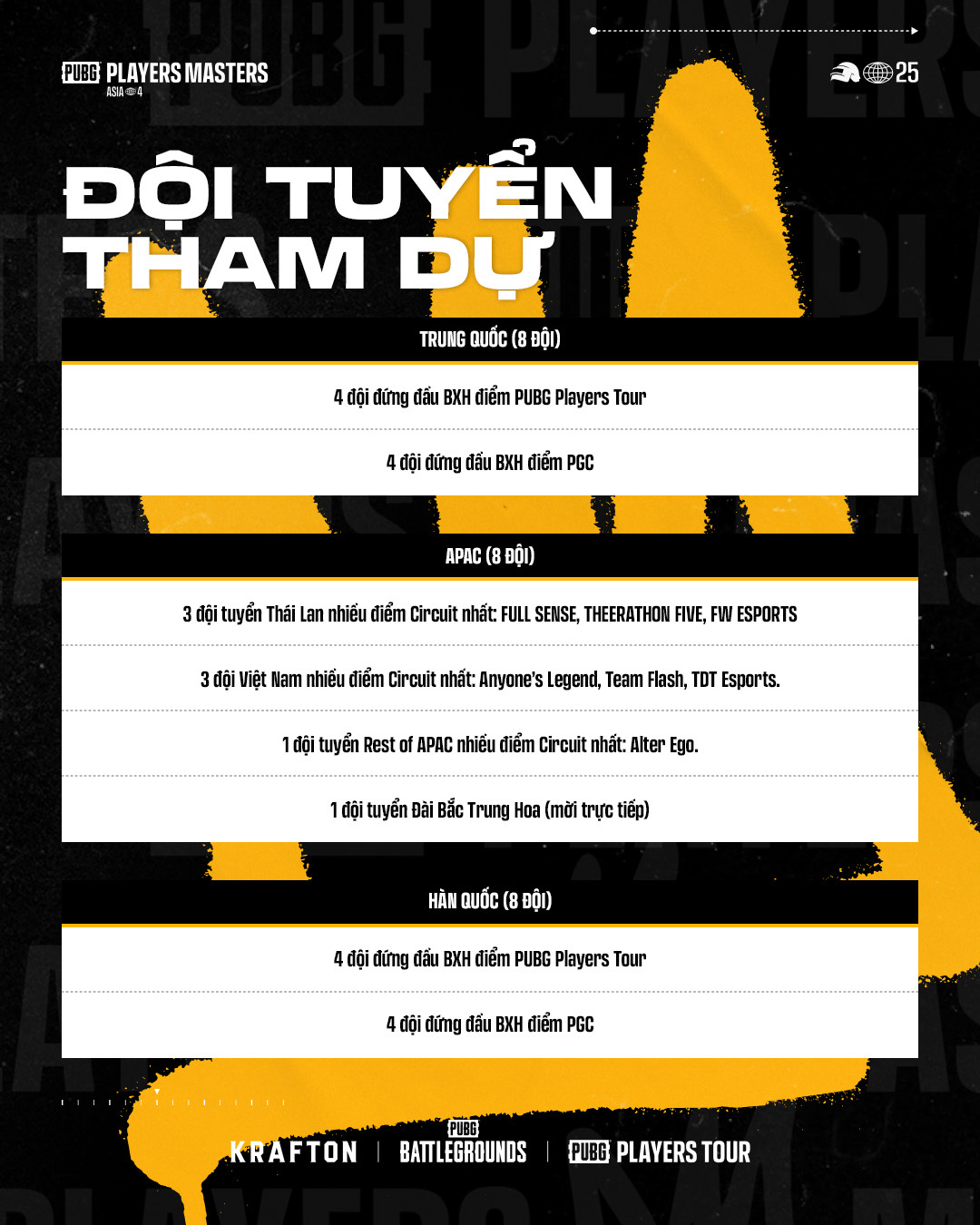※ Nếu có trùng đội, suất sẽ được trao cho đội có tổng điểm PUBG Players Tour tích lũy cao hơn.