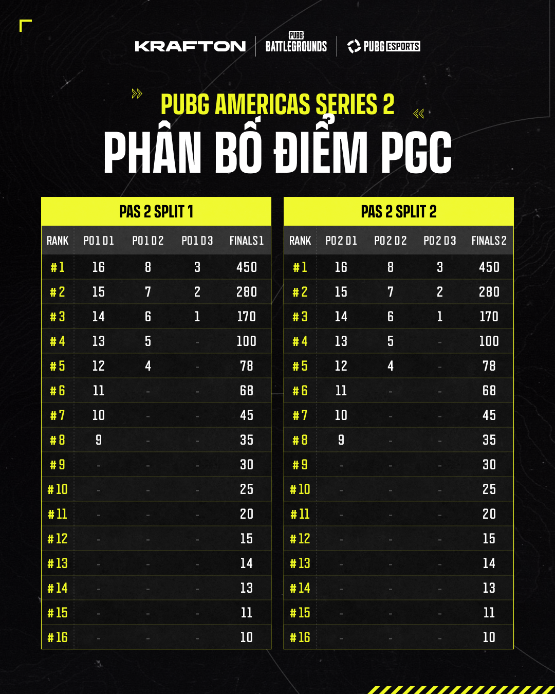 ❗️ Chỉ 16 đội đứng đầu trong mỗi giải đấu PGS nhận được điểm PGS. Các đội xếp hạng 17–24 không nhận được điểm PGS