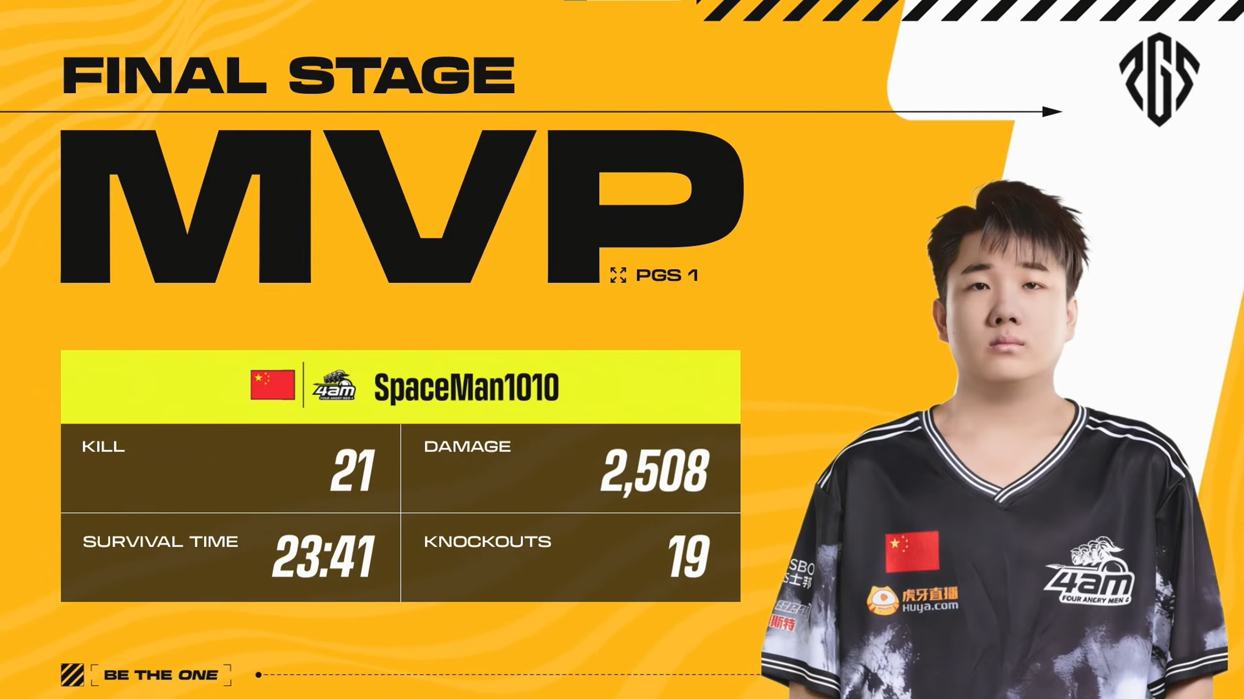 Giải thưởng MVP Vòng Chung Kết PGS 1 thuộc về SpaceMan1010 của Four Angry Men. Việc MVP đến từ đội Á quân cho thấy màn trình diễn cá nhân vượt trội của anh. SpaceMan1010 đạt 21 kills — cao nhất giải — và là đầu tàu hỏa lực của đội. MVP nhận phần thưởng $10,000.