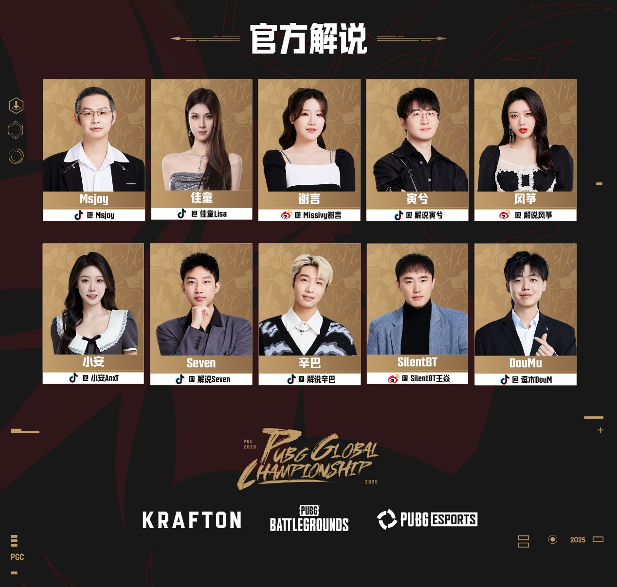 PGC 2025 官方全球解说阵容与直播渠道